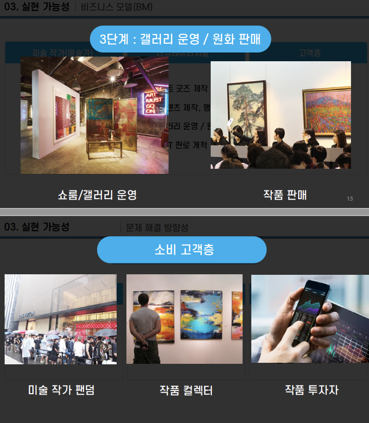 또한 전시회를 개최하고, 작품 자체를 중개하는 등 확장 가능성에 대해 어필했습니다.